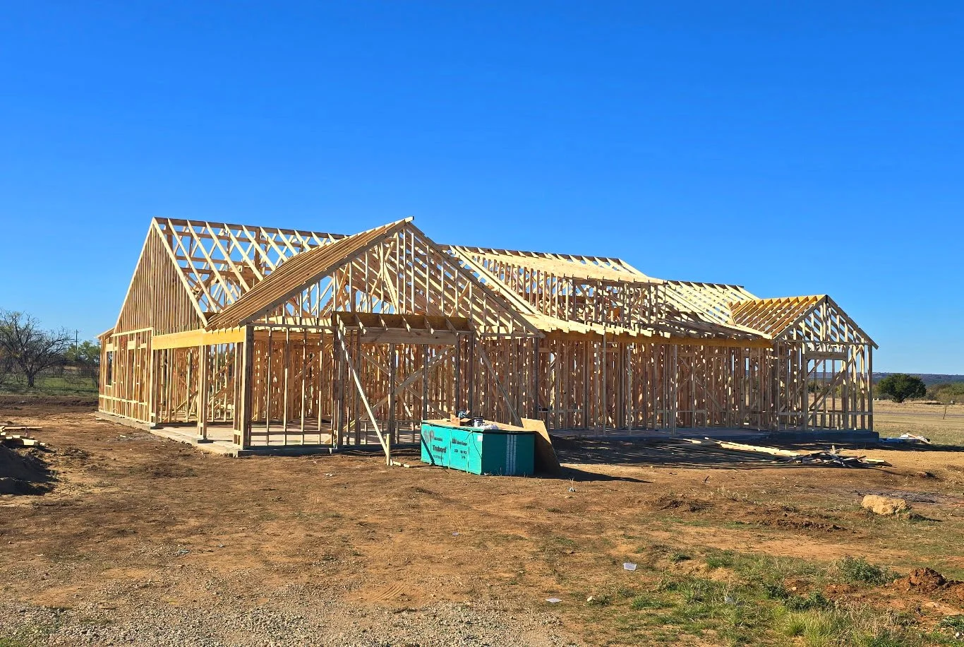 There’s a moment in every custom home build when everything changes. The foundation has cured. The lumber arrives. And suddenly, what was once a flat slab transforms into walls, rooflines, and defined spaces. We’re excited to share that framing is officially complete on our custom modern farmhouse at Possum Kingdom Lake. The home is no longer just lines on paper, it’s standing.